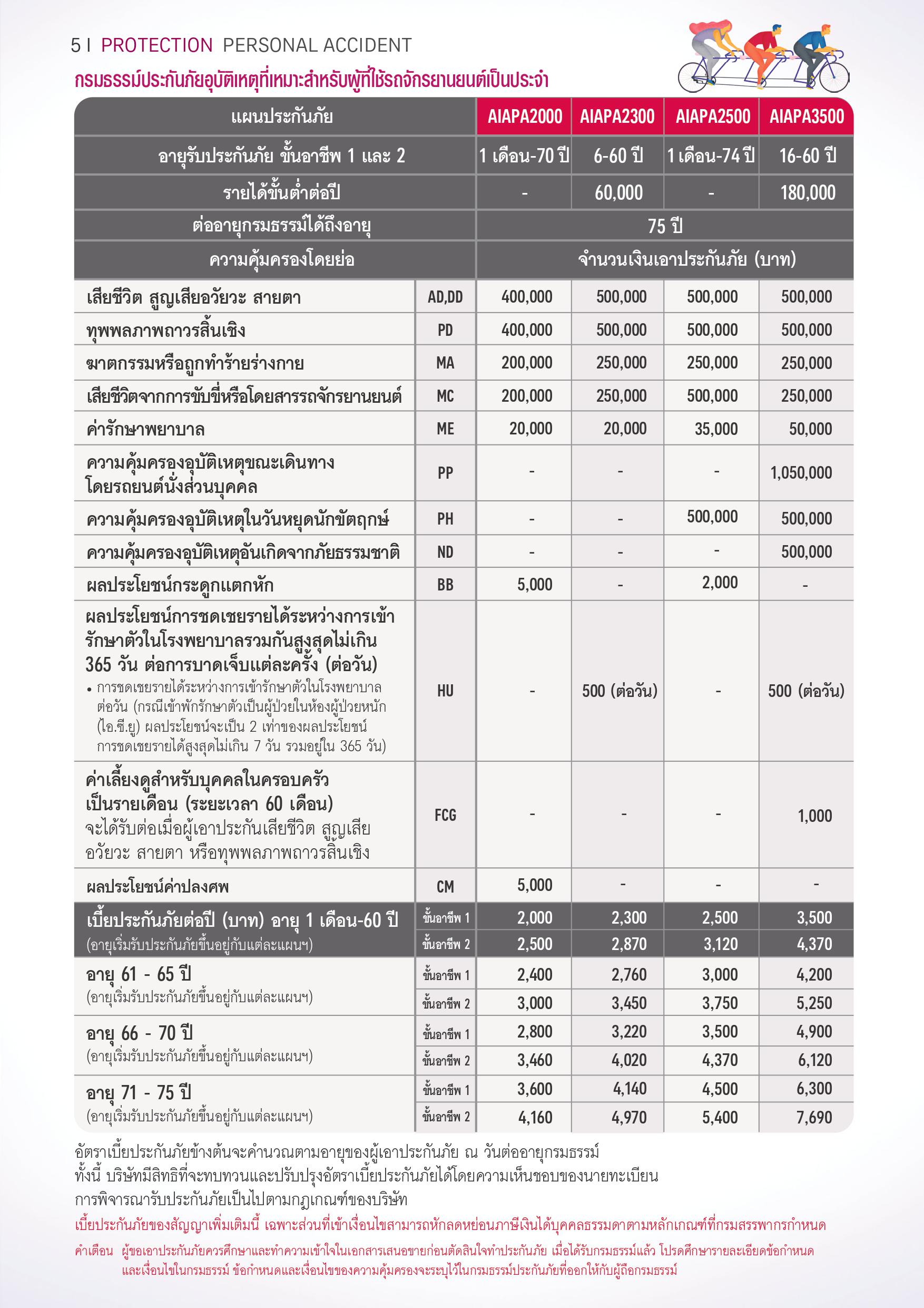 หมดความกังวลด้วยความคุ้มครองชีวิตจากอุบัติเหตุทุกประเภท รวมถึงอุบัติเหตุจากการขับขี่หรือโดยสารรถจักรยานยนต์สูงถึง 500,000 บาท